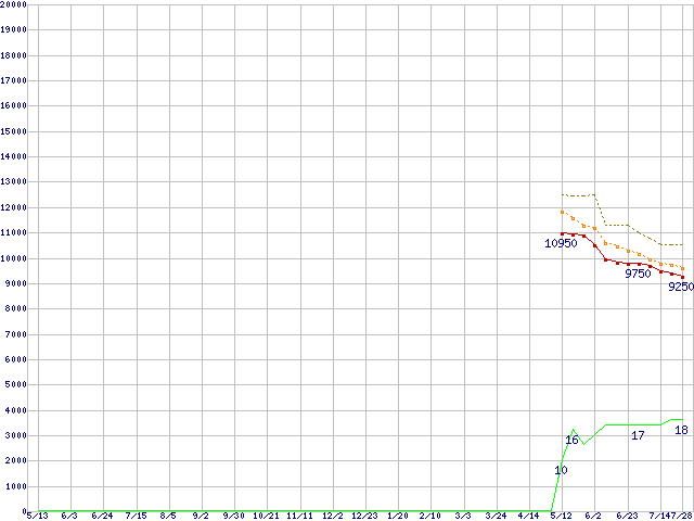 CT064M4SSD2 (64GB,MLC)の価格推移↑前グラフ↓次グラフ(2010年5月13日〜2011年7月28日)※このグラフは過去のデータも税率5%相当に調整した税込み相当額のグラフです。●関連グラフHDD/SSD主要製品の最安値推移HDD/SSD主要製品(最安値1万円未満)の最安値推移HDD/SSD 60GB〜80GB未満の最安値推移m4 (SSD,6Gbps,2.5インチ,リード415MB/s・ライト260〜95MB/s)の最安値推移●凡例最安値(点線部は販売店未確認または未調査)平均値最高値ショップ数