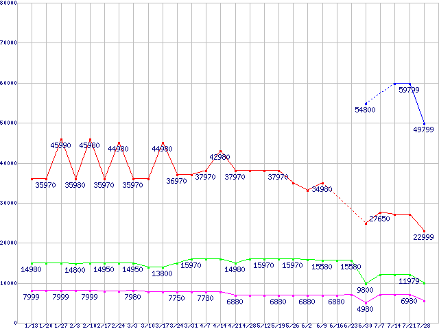 | ※製品名をクリックすると個別のグラフを表示します ※点線部は販売店が確認できなかった、または調査データがないことを示します | |