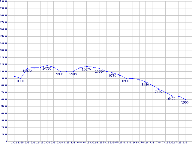 | メモリ主要製品(最安値5千円〜1万円未満)の最安値推移 |
