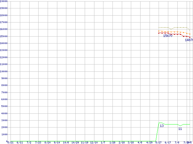 Core i5-2310 (2.90GHz,TDP 95W)の価格推移↑前グラフ↓次グラフ(2010年5月21日〜2011年8月5日)※このグラフは過去のデータも税率5%相当に調整した税込み相当額のグラフです。●関連グラフCPU主要製品の最安値推移CPU主要製品(最安値1万円〜2万円未満)の最安値推移Intel系CPUの最安値推移LGA1155 (Smart Cache 6MB,Quad Core,GPU内蔵)の最安値推移Core i5(LGA1155)の最安値推移●凡例最安値(点線部は販売店未確認または未調査)平均値最高値ショップ数