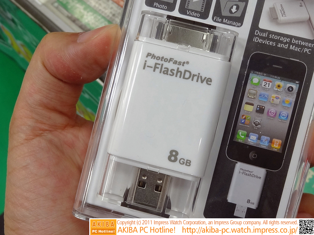 ![]() | AKIBA PC Hotline! [拡大画像]iPhoneに直結できるUSBメモリが登場 / DockコネクタとUSBコネクタを両搭載 今週見つけた新製品:モバイルアクセサリー PhotoFast i-FlashDrive 8GB |