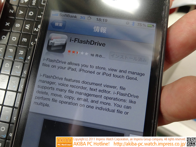 ![]() | AKIBA PC Hotline! [拡大画像]iPhoneに直結できるUSBメモリが登場 / DockコネクタとUSBコネクタを両搭載 今週見つけた新製品:モバイルアクセサリー PhotoFast i-FlashDrive 8GB |