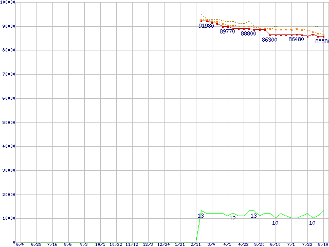 Core i7-990X Extreme Edition (3.46GHz)の価格推移↑前グラフ↓次グラフ(2010年6月4日〜2011年8月19日)※このグラフは過去のデータも税率5%相当に調整した税込み相当額のグラフです。●関連グラフCPU主要製品の最安値推移CPU主要製品(最安値6万円以上)の最安値推移Intel系CPUの最安値推移LGA1366 (QPI 6.4GT/s,L3キャッシュ12MB,6Core,Hyper-Threading,TDP 130W)の最安値推移●凡例最安値(点線部は販売店未確認または未調査)平均値最高値ショップ数