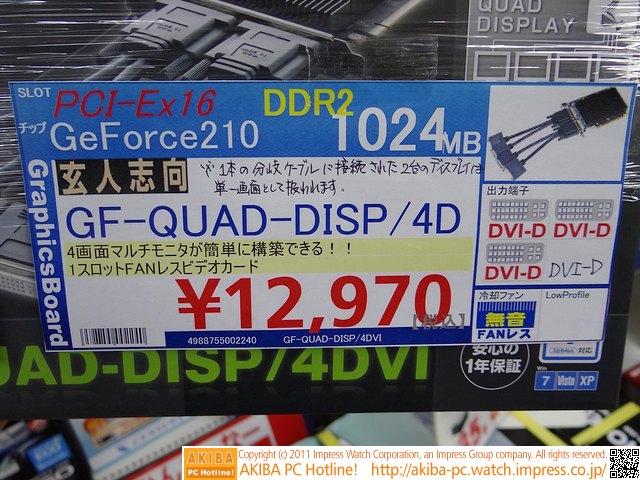 4画面出力の安価なファンレスビデオカードが発売