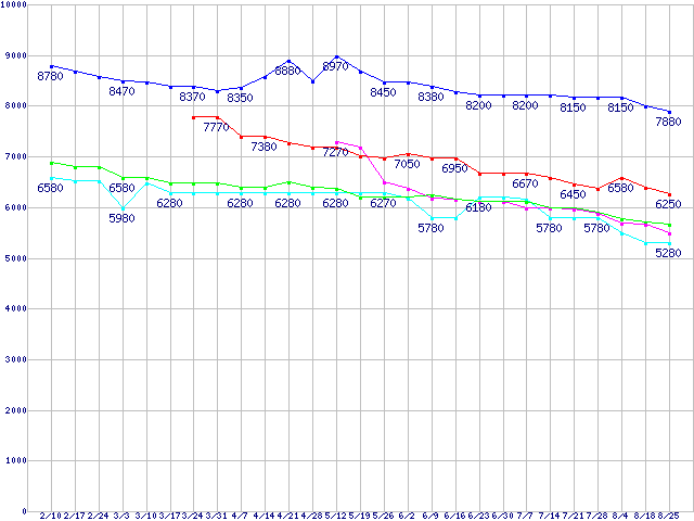| ※製品名をクリックすると個別のグラフを表示します ※点線部は販売店が確認できなかった、または調査データがないことを示します | |