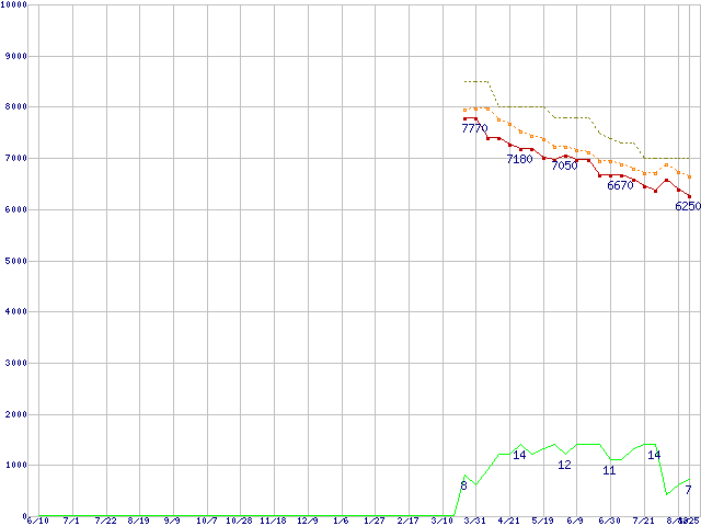 0S03224(純正パッケージ品) (2TB,32MB)の価格推移↑前グラフ↓次グラフ(2010年6月10日〜2011年8月25日)※このグラフは過去のデータも税率5%相当に調整した税込み相当額のグラフです。●関連グラフHDD/SSD主要製品の最安値推移HDD/SSD主要製品(最安値1万円未満)の最安値推移HDD 2TB〜2.5TB未満の最安値推移DESKSTAR (6Gb/s)の最安値推移●凡例最安値(点線部は販売店未確認または未調査)平均値最高値ショップ数