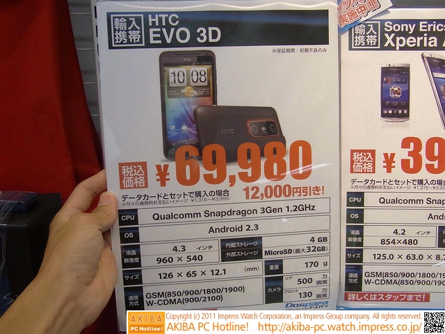 AKIBA PC Hotline![拡大画像]デュアルコアCPU+3D液晶のスマホ「EVO 3D」が直輸入 今週見つけた新製品:スマートフォン/タブレット端末 HTC EVO 3D前の画像←[記事に戻る]