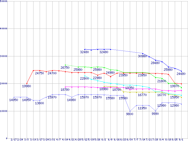 | ※製品名をクリックすると個別のグラフを表示します ※点線部は販売店が確認できなかった、または調査データがないことを示します | |