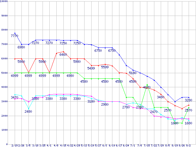 | ※製品名をクリックすると個別のグラフを表示します ※点線部は販売店が確認できなかった、または調査データがないことを示します | |