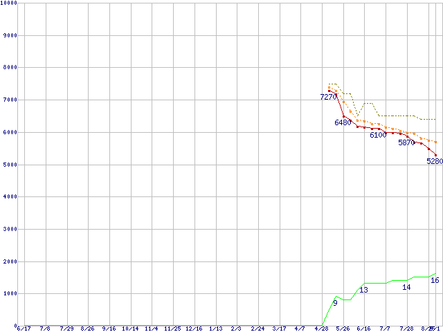 WD20EARX (2TB,64MB)の価格推移↑前グラフ↓次グラフ(2010年6月17日〜2011年9月1日)※このグラフは過去のデータも税率5%相当に調整した税込み相当額のグラフです。●関連グラフHDD/SSD主要製品の最安値推移HDD/SSD主要製品(最安値1万円未満)の最安値推移HDD 2TB〜2.5TB未満の最安値推移WD Caviar Green (6Gb/s)の最安値推移●凡例最安値(点線部は販売店未確認または未調査)平均値最高値ショップ数