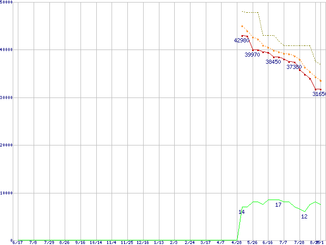 CT256M4SSD2 (256GB,MLC)の価格推移↑前グラフ↓次グラフ(2010年6月17日〜2011年9月1日)※このグラフは過去のデータも税率5%相当に調整した税込み相当額のグラフです。●関連グラフHDD/SSD主要製品の最安値推移HDD/SSD主要製品(最安値2万円以上)の最安値推移HDD 250〜300GB未満の最安値推移m4 (SSD,6Gbps,2.5インチ,リード415MB/s・ライト260〜95MB/s)の最安値推移●凡例最安値(点線部は販売店未確認または未調査)平均値最高値ショップ数