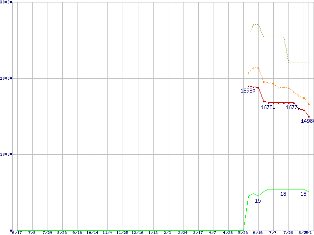 その他6Gbps対応SSD (128GB,MLC)の価格推移↑前グラフ↓次グラフ(2010年6月17日〜2011年9月1日)※このグラフは過去のデータも税率5%相当に調整した税込み相当額のグラフです。●関連グラフHDD/SSD主要製品の最安値推移HDD/SSD主要製品(最安値1万円〜1万5千円未満)の最安値推移HDD 100〜160GB未満の最安値推移2.5インチSSD (SSD,6Gbps,2.5インチ)の最安値推移●凡例最安値(点線部は販売店未確認または未調査)平均値最高値ショップ数
