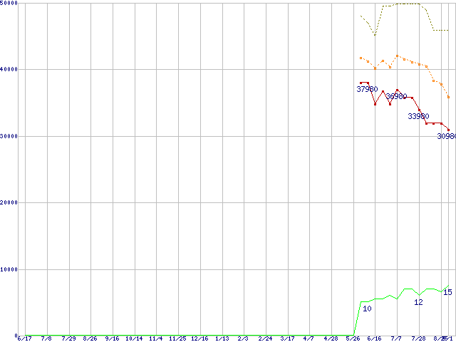 その他6Gbps対応SSD (256GB,MLC)の価格推移↑前グラフ↓次グラフ(2010年6月17日〜2011年9月1日)※このグラフは過去のデータも税率5%相当に調整した税込み相当額のグラフです。●関連グラフHDD/SSD主要製品の最安値推移HDD/SSD主要製品(最安値2万円以上)の最安値推移HDD 250〜300GB未満の最安値推移2.5インチSSD (SSD,6Gbps,2.5インチ)の最安値推移●凡例最安値(点線部は販売店未確認または未調査)平均値最高値ショップ数