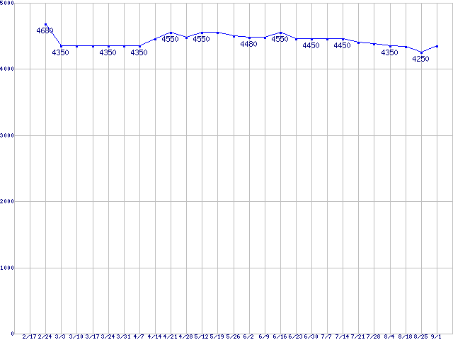 | Barracuda 7200.12 (7200rpm,6Gbps)の最安値推移 |