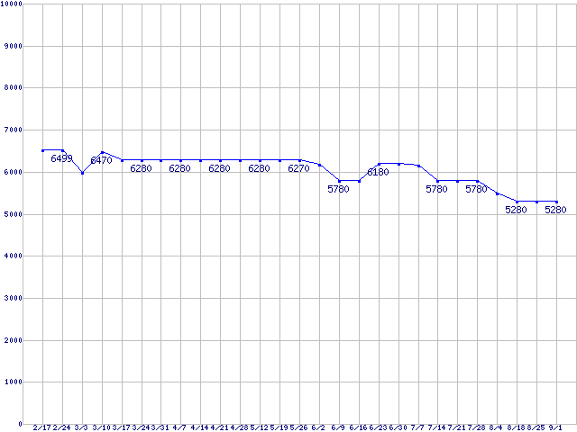 | EcoGreent F4 (5400rpm,3Gb/s,3.5インチ)の最安値推移 |