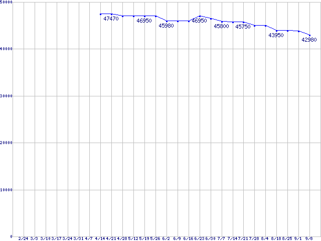 | HDD 300〜400GB未満の最安値推移 |