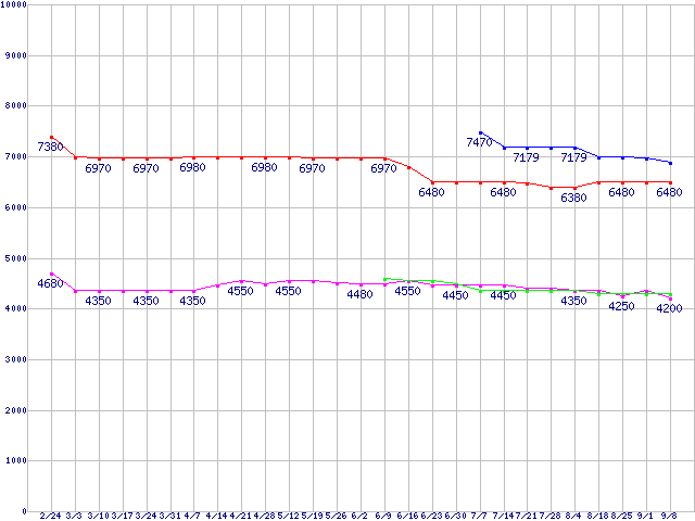 | ※製品名をクリックすると個別のグラフを表示します ※点線部は販売店が確認できなかった、または調査データがないことを示します | |