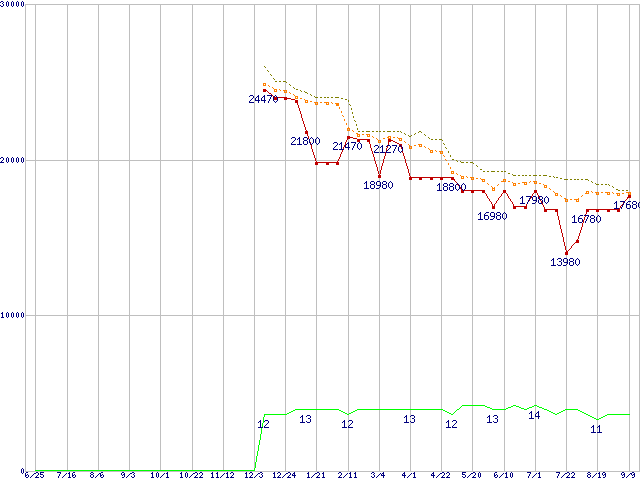 | Phenom II X6 1100T Black Edition (3.3GHz,L2 512KB×6,L3 6MB,TDP 125W)の価格推移 |