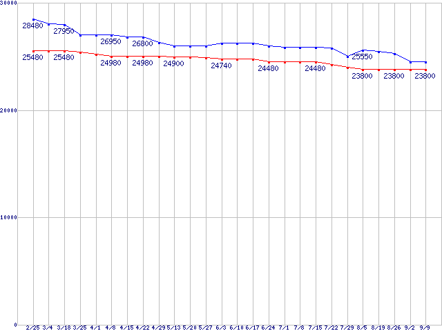 | LGA1155 (Smart Cache 8MB,Quad Core,GPU内蔵,Hyper-Threading,TDP 95W)の最安値推移 |