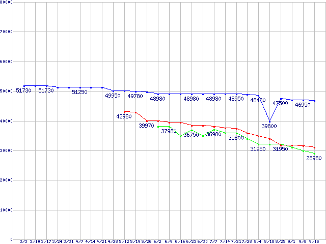 | ※製品名をクリックすると個別のグラフを表示します ※点線部は販売店が確認できなかった、または調査データがないことを示します | |