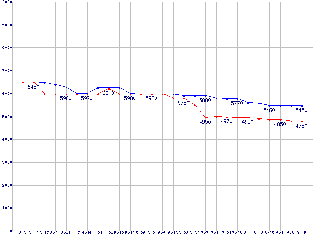 | ※製品名をクリックすると個別のグラフを表示します ※点線部は販売店が確認できなかった、または調査データがないことを示します |