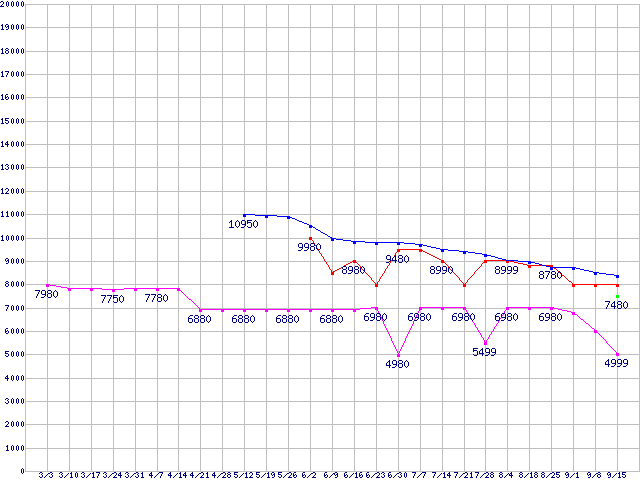 | HDD/SSD 60GB〜80GB未満の最安値推移 |