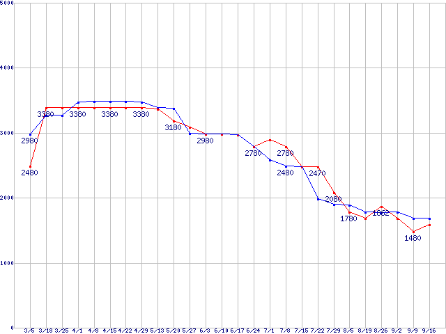 | ※製品名をクリックすると個別のグラフを表示します ※点線部は販売店が確認できなかった、または調査データがないことを示します |