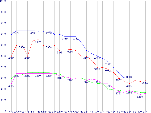 | ※製品名をクリックすると個別のグラフを表示します ※点線部は販売店が確認できなかった、または調査データがないことを示します | |