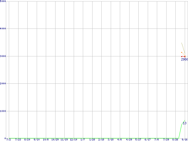 Celeron G440 (1.6GHz,1MB,シングルコア,TDP 35W)の価格推移↑前グラフ↓次グラフ(2010年7月2日〜2011年9月16日)※このグラフは過去のデータも税率5%相当に調整した税込み相当額のグラフです。●関連グラフCPU主要製品の最安値推移CPU主要製品(最安値1万円未満)の最安値推移Intel系CPUの最安値推移LGA1155 (GPU内蔵)の最安値推移●凡例最安値(点線部は販売店未確認または未調査)平均値最高値ショップ数