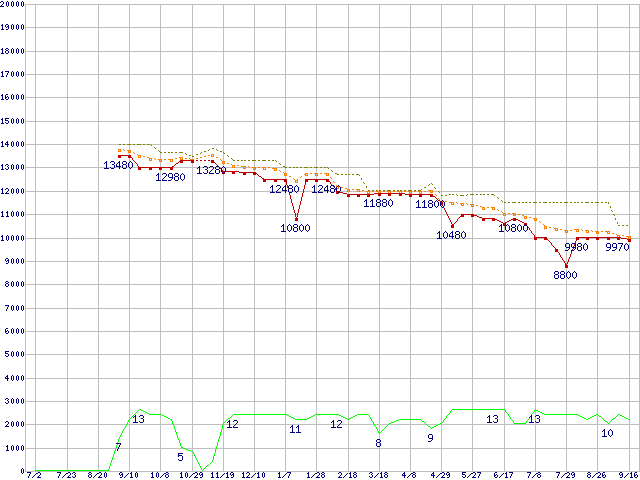 Phenom II X4 955 (3.2GHz,L2 512KB×4,L3 6MB,TDP 95W)の価格推移↑前グラフ↓次グラフ(2010年7月2日〜2011年9月16日)※このグラフは過去のデータも税率5%相当に調整した税込み相当額のグラフです。●関連グラフCPU主要製品の最安値推移CPU主要製品(最安値1万円未満)の最安値推移AMD系CPUの最安値推移Socket AM3 (HyperTransport 3.0,Quad Core)の最安値推移●凡例最安値(点線部は販売店未確認または未調査)平均値最高値ショップ数
