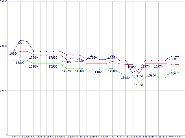 | Socket AM3 (HyperTransport 3.0,6Core)の最安値推移 |