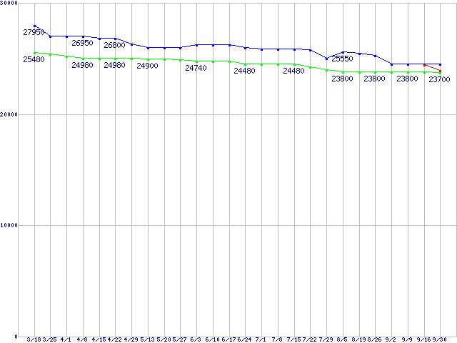 | CPU主要製品(最安値2万円〜3万円未満)の最安値推移 |