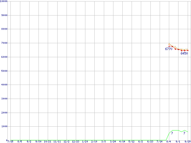 WD25EZRX (2.5TB,64MB)の価格推移↑前グラフ↓次グラフ(2010年7月15日〜2011年9月29日)※このグラフは過去のデータも税率5%相当に調整した税込み相当額のグラフです。●関連グラフHDD/SSD主要製品の最安値推移HDD/SSD主要製品(最安値1万円未満)の最安値推移HDD 2.5TB〜3TB未満の最安値推移WD Caviar Green (6Gb/s)の最安値推移●凡例最安値(点線部は販売店未確認または未調査)平均値最高値ショップ数