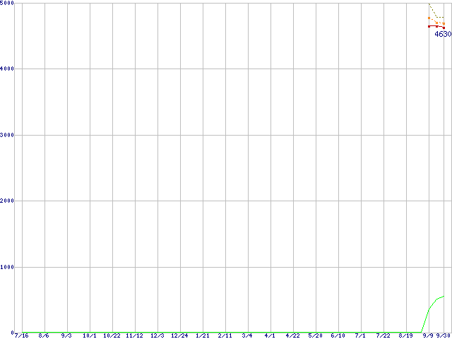 Celeron G540 (2.5GHz,2MB,TDP 65W)の価格推移↑前グラフ↓次グラフ(2010年7月16日〜2011年9月30日)※このグラフは過去のデータも税率5%相当に調整した税込み相当額のグラフです。●関連グラフCPU主要製品の最安値推移CPU主要製品(最安値1万円未満)の最安値推移Intel系CPUの最安値推移LGA1155 (GPU内蔵)の最安値推移●凡例最安値(点線部は販売店未確認または未調査)平均値最高値ショップ数