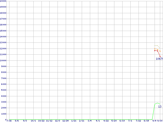 Core i3-2130 (3.4GHz,TDP 65W)の価格推移↑前グラフ↓次グラフ(2010年7月16日〜2011年9月30日)※このグラフは過去のデータも税率5%相当に調整した税込み相当額のグラフです。●関連グラフCPU主要製品の最安値推移CPU主要製品(最安値1万円〜2万円未満)の最安値推移Intel系CPUの最安値推移LGA1155 (Smart Cache 3MB,Dual Core,GPU内蔵,Hyper-Threading)の最安値推移●凡例最安値(点線部は販売店未確認または未調査)平均値最高値ショップ数