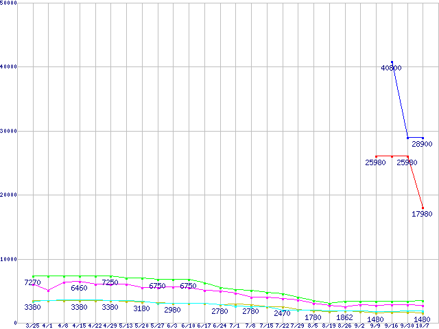 | ※製品名をクリックすると個別のグラフを表示します ※点線部は販売店が確認できなかった、または調査データがないことを示します | |