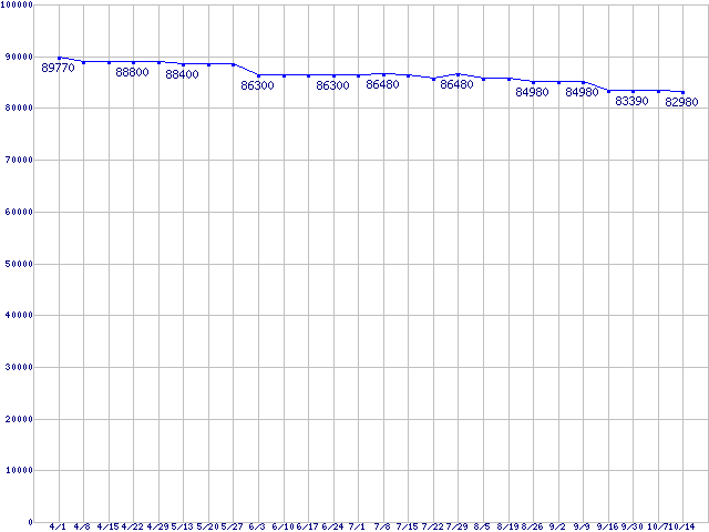 | CPU主要製品(最安値6万円以上)の最安値推移 |