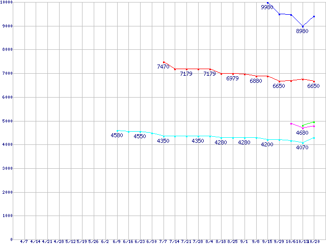 | ※製品名をクリックすると個別のグラフを表示します ※点線部は販売店が確認できなかった、または調査データがないことを示します | |