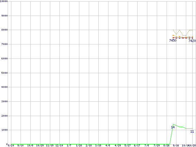 Pentium G860 (3.0GHz,TDP 65W)の価格推移↑前グラフ↓次グラフ(2010年8月20日〜2011年10月28日)※このグラフは過去のデータも税率5%相当に調整した税込み相当額のグラフです。●関連グラフCPU主要製品の最安値推移CPU主要製品(最安値1万円未満)の最安値推移Intel系CPUの最安値推移LGA1155 (Smart Cache 3MB,Dual Core,GPU内蔵)の最安値推移●凡例最安値(点線部は販売店未確認または未調査)平均値最高値ショップ数