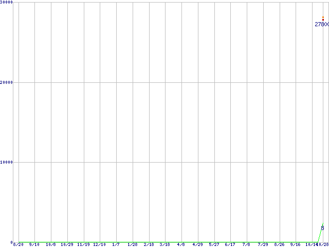 Core i7-2700K (3.50GHz)の価格推移↑前グラフ↓次グラフ(2010年8月20日〜2011年10月28日)※このグラフは過去のデータも税率5%相当に調整した税込み相当額のグラフです。●関連グラフCPU主要製品の最安値推移CPU主要製品(最安値2万円〜3万円未満)の最安値推移Intel系CPUの最安値推移LGA1155 (Smart Cache 8MB,Quad Core,GPU内蔵,Hyper-Threading,TDP 95W)の最安値推移●凡例最安値(点線部は販売店未確認または未調査)平均値最高値ショップ数