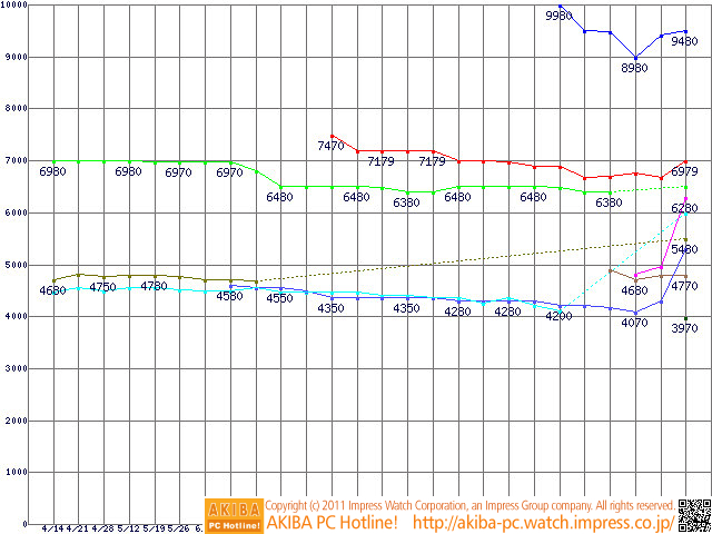 [拡大画像]HDDが続騰、2TBは7千円、3TBは1万円以上に / 販売量は沈静化