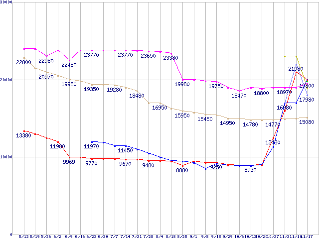 | ※製品名をクリックすると個別のグラフを表示します ※点線部は販売店が確認できなかった、または調査データがないことを示します | |