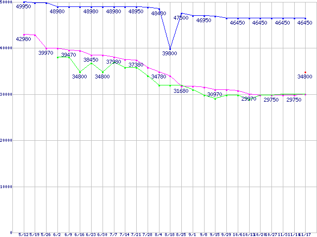 | HDD 250〜300GB未満の最安値推移 |