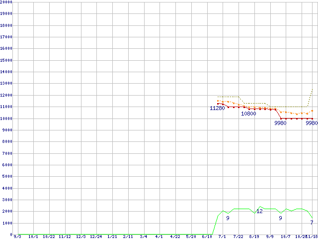| Phenom II X4 960T Black Edition (3.0GHz,L2 512KB×4,L3 6MB,TDP 95W)の価格推移 |