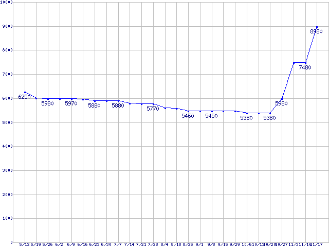 | TRAVELSTAR (5400rpm,3Gb/s,2.5インチ)の最安値推移 |