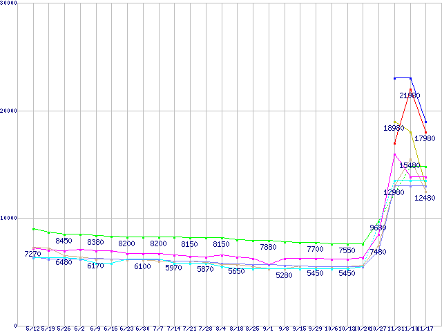 | ※製品名をクリックすると個別のグラフを表示します ※点線部は販売店が確認できなかった、または調査データがないことを示します | |