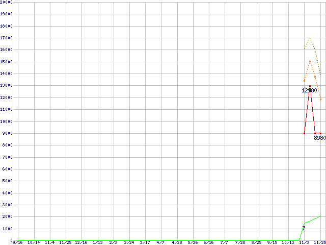 WesternDigital製その他3.5インチHDD 1TBの価格推移↑前グラフ↓次グラフ(2010年9月16日〜2011年11月25日)※このグラフは過去のデータも税率5%相当に調整した税込み相当額のグラフです。●関連グラフHDD/SSD主要製品の最安値推移HDD/SSD主要製品(最安値1万円未満)の最安値推移HDD 1TB〜1.5TB未満の最安値推移WesternDigital製その他3.5インチHDD (SATA)の最安値推移●凡例最安値(点線部は販売店未確認または未調査)平均値最高値ショップ数