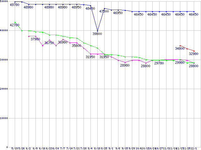 | HDD 250〜300GB未満の最安値推移 |