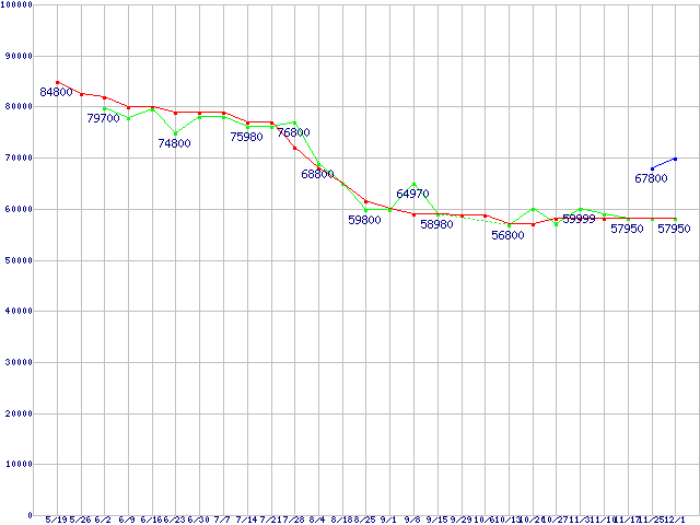 | ※製品名をクリックすると個別のグラフを表示します ※点線部は販売店が確認できなかった、または調査データがないことを示します | |
