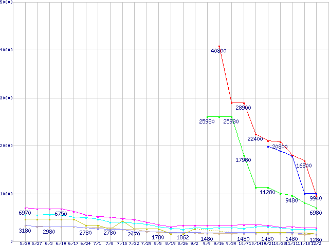 | ※製品名をクリックすると個別のグラフを表示します ※点線部は販売店が確認できなかった、または調査データがないことを示します | |